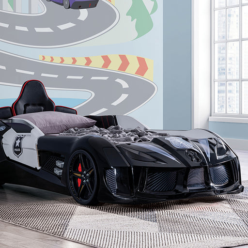 FOA EastThis is what dreams are made of! Create a fun-filled kids room with this sleek and comfy twin bed. A stylish interpretation of the real patrol cars...