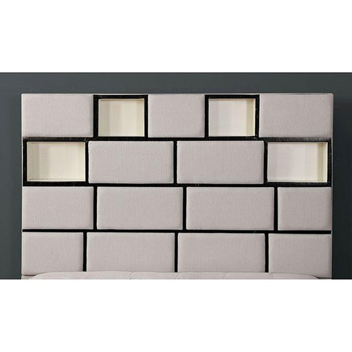 SYBELLA Cal.King Bed, Beige, 91"L X 74 5/8"W X 46 1/2"H, 182.6lbs. Comfort and functionality are the hallmarks of this fully upholstered, mattress-...