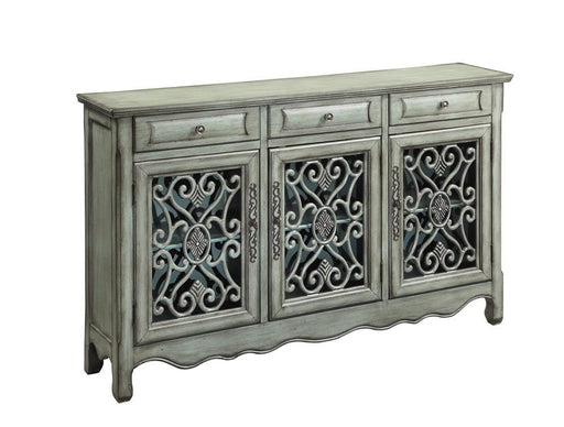 Coaster Z2 PremiumThis traditional accent cabinet brings vintage elegance with a romantic twist. Finished in antiqued green, it features intricate bronze hardware, s...