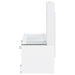 Transform your daily routine with this modern vanity desk, expertly merging sleek aesthetics and smart organization. Its high gloss finish, paired with clear acrylic handles, imparts a bright, contemporary look. Two smooth-gliding drawers and a cabinet with a framed fluted panel and adjustable shelf provide ample storage for cosmetics and styling tools. A tempered glass top keeps the surface pristine, while the integrated LED mirror, activated by a touch switch, ensures flawless lighting for every occasion.