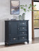 Armoire Product Dimension: 48"W X 18"D X 48"H Gorgeous lines and a grand silhouette give this bedroom furniture a distinctive edge. The nickel hardware which comes in knobs and cup pulls adds a slight sense of fancy. Molding details on each case good's front give it a country twist that's amplified by the bold slate blue finish.