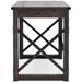 - Cross-buck rails, metal accents and stretcher in contrasting black iron tone