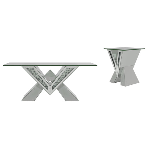 Taffeta V-shaped Coffee Table with Glass Top Silver
